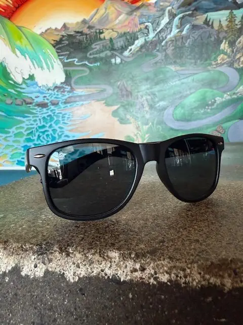 The classic wayfarer style sunglasses with a Distant Brewing flair.